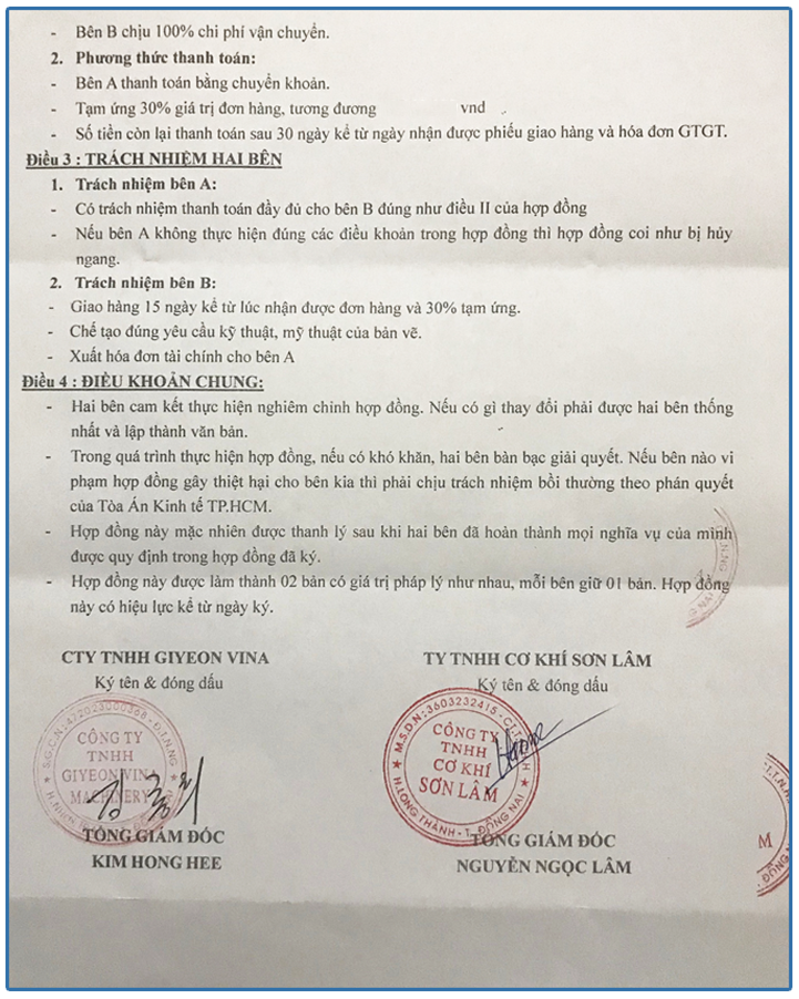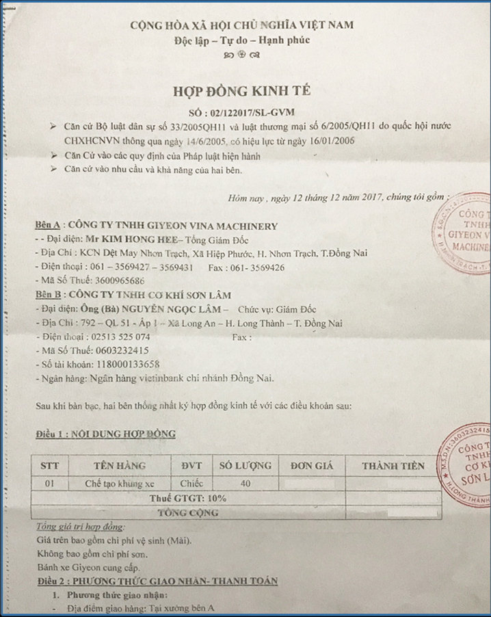 Hợp đồng kinh tế Công Ty GYEON VINA MACHINERY
