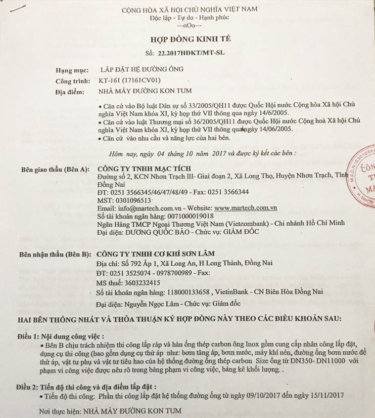 Hợp đồng kinh tế Công Ty Mạc Tích