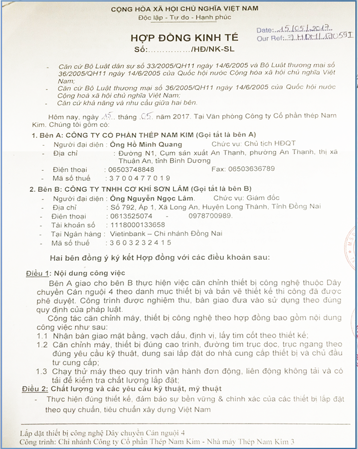 Hợp đồng kinh tế Công Ty Nam Kim ( cán nguội )