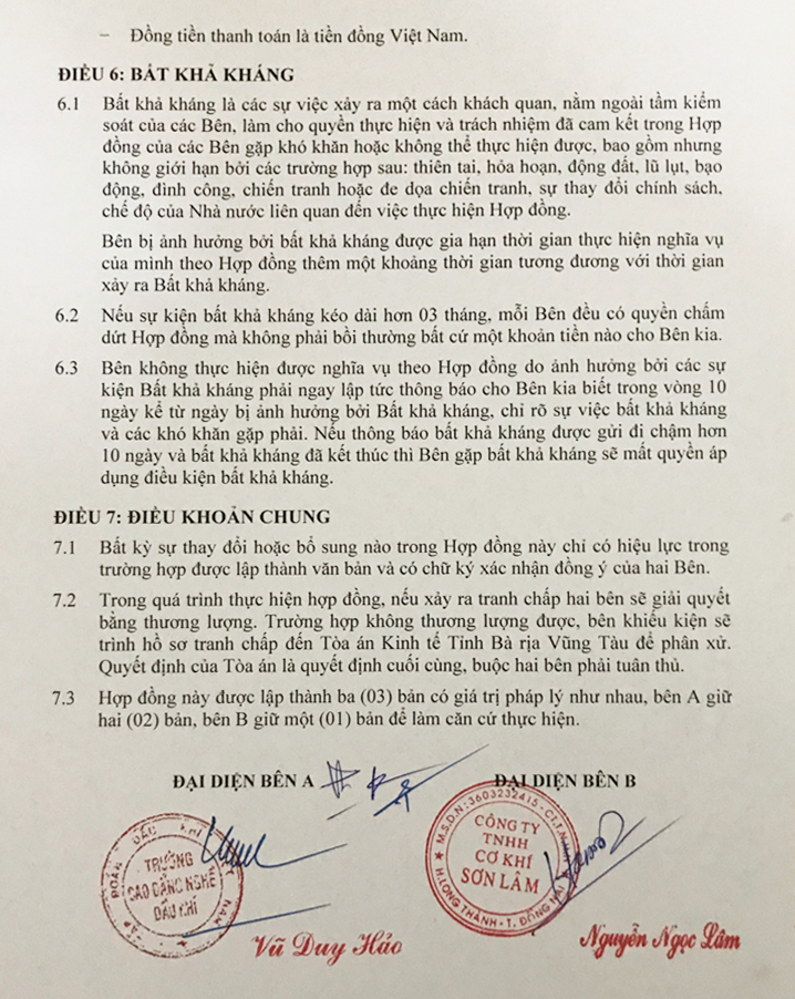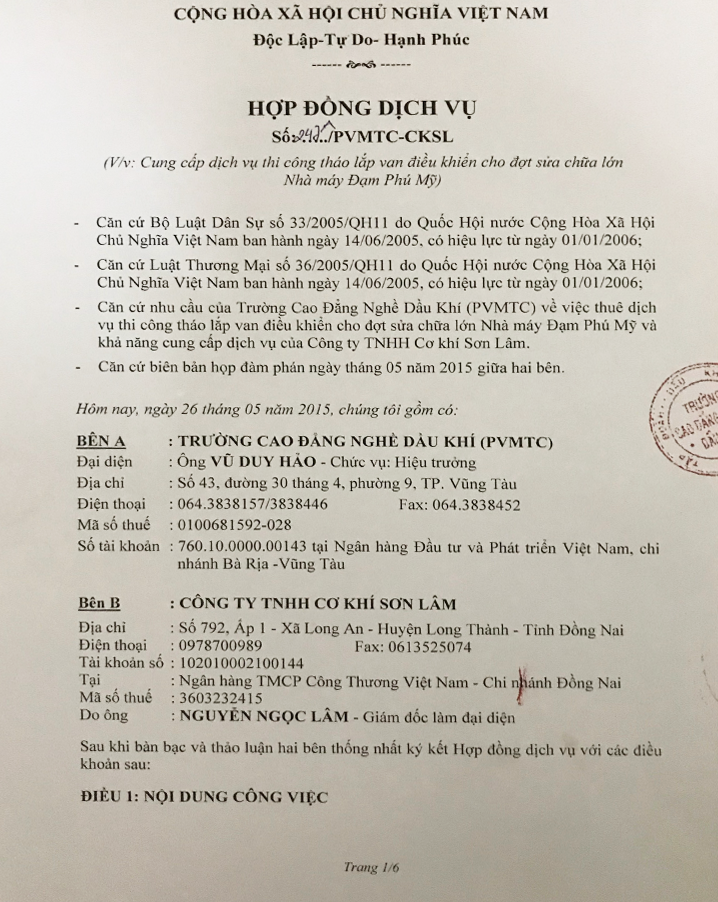 Hợp đồng kinh tế Trường Cao Đẳng Dầu Khí